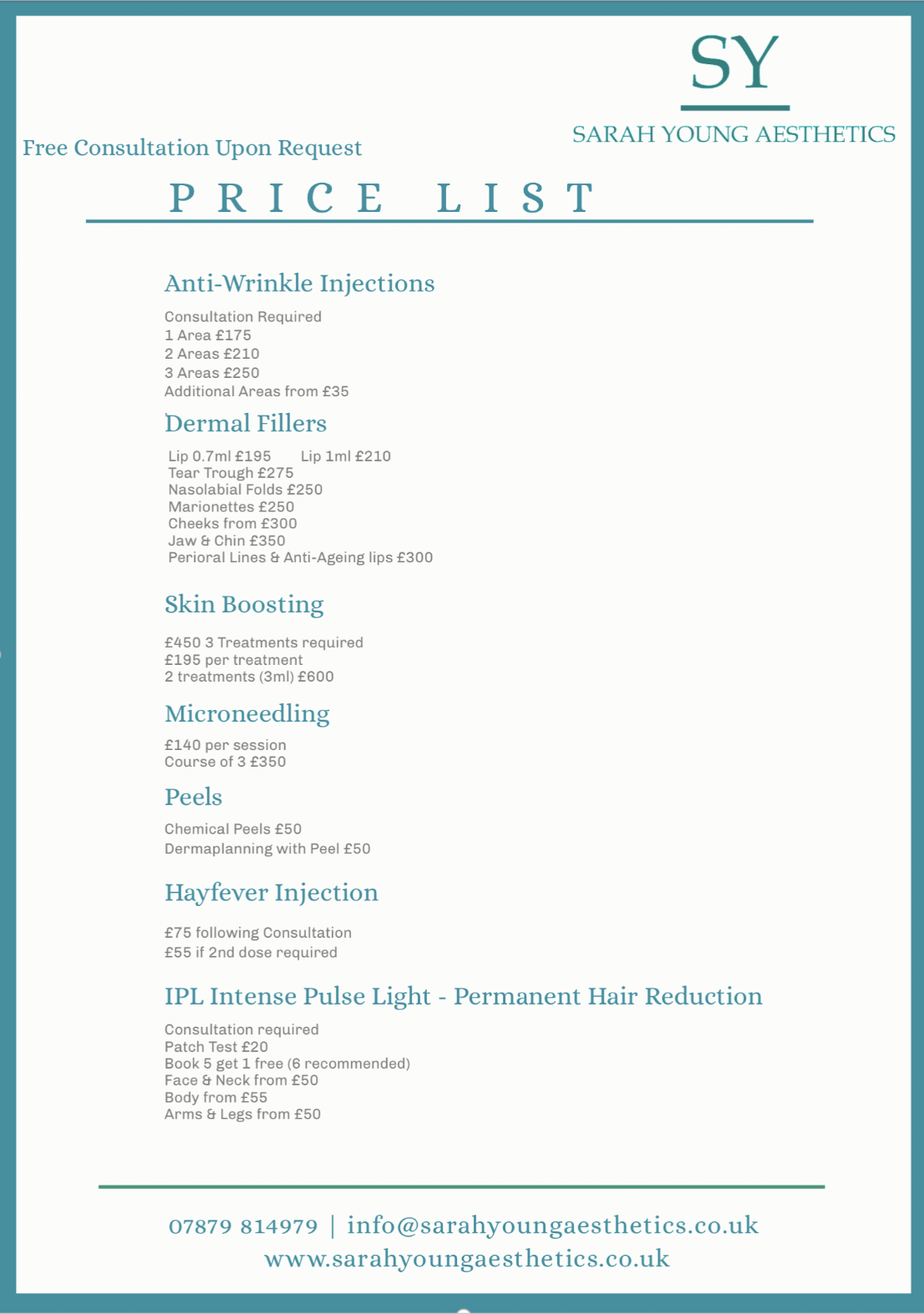 PHONE: 07879 814979 / info@sarahyoungaesthetics.co.uk